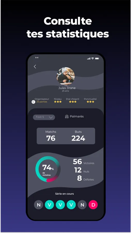 À chaque fois que tu joues, tu peux retrouver tes statistiques de jeu : score, buteurs, nombre de victoire.....