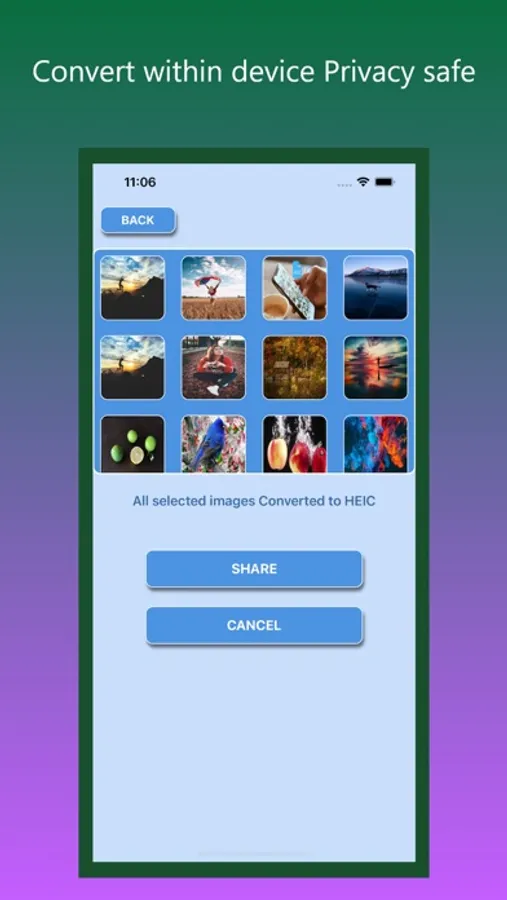 Convert from: JPG, BMP, GIF, JPEG, PNG, HEIC, HEIF