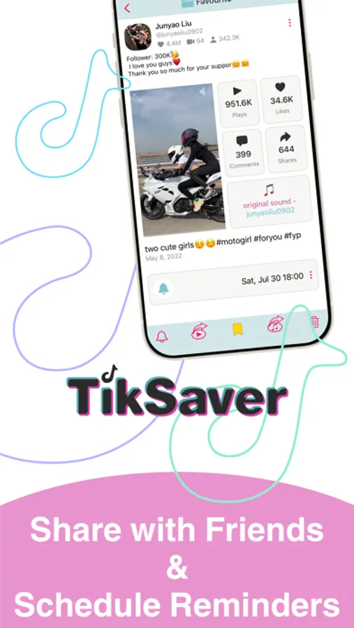 Create bookmarks and manage videos with TikSaver. Create collections, share video or audio with your friends!