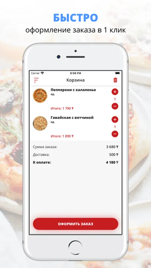 Скачивайте наше приложение, оформляйте заказ и наслаждайтесь любимой едой, где бы Вы ни были! Приятного аппетита!