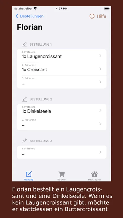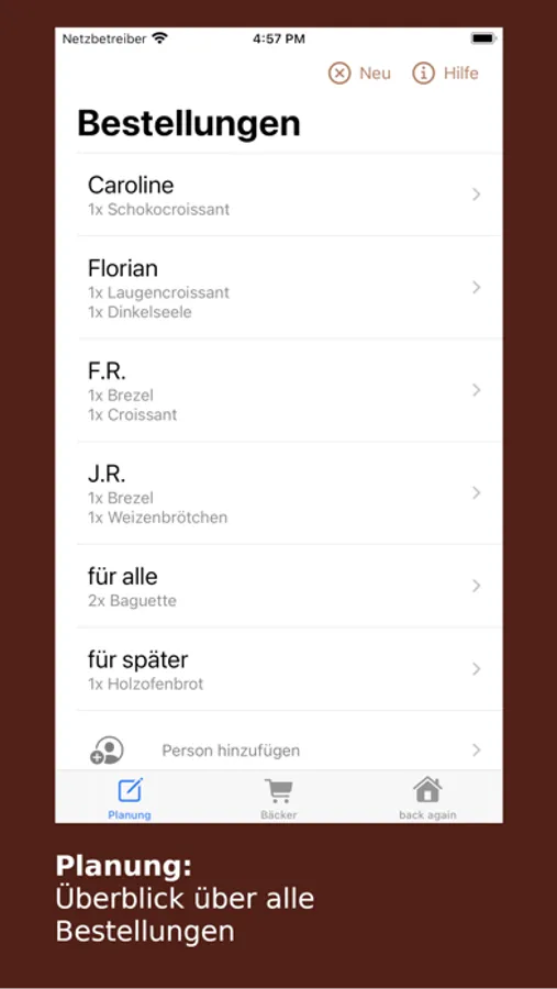 Brezel Pro - Die App für Sammelbestellungen mit Extrawünschen.