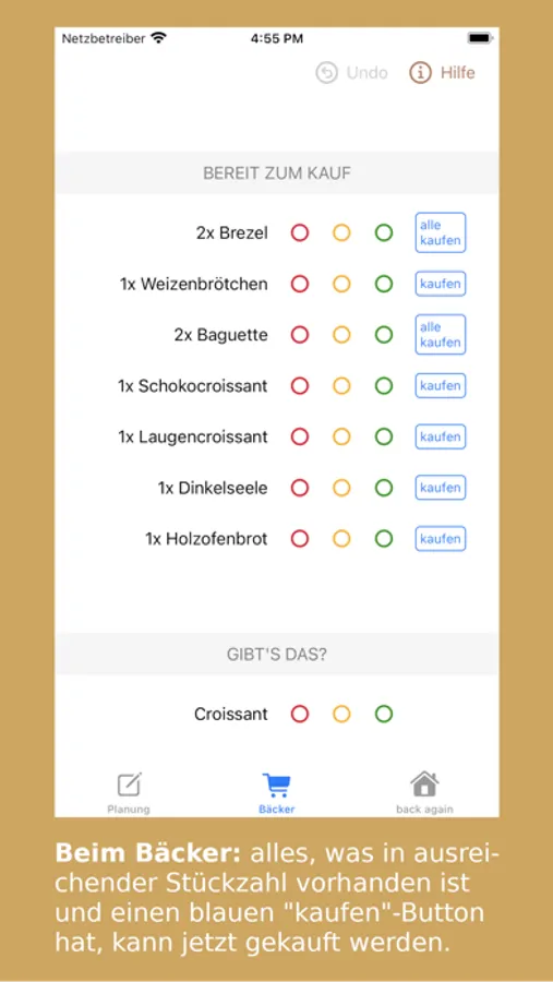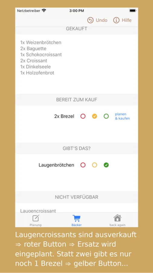 Hast Du eine große Familie? Oder schoneinmal viele Freunde zu einem Brunch eingeladen? Dann kennst Du vielleicht folgende Situation: Du nimmst die Bestellungen für den Bäcker auf und möchtest es jedem Recht machen. Der Erste beginnt: "Also, wenn es ... gibt, dann hätte ich gerne ... ansonsten ... und außerdem ..." und Du ahnst, dass das nicht einfach wird. Du stehst beim Bäcker an der Theke und schaust erst auf Deine Notizen und dann auf die verfügbaren Backwaren und Du siehst, dass es dummerweise statt der 8 bestellten Brezeln nur noch 5 gibt. Spätestens jetzt kannst Du Brezel Pro gebrauchen!
