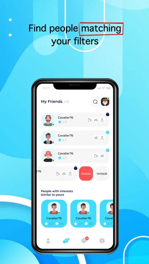 Users will be suggested according to their common interests, in order to have topics for a natural ice breaker.