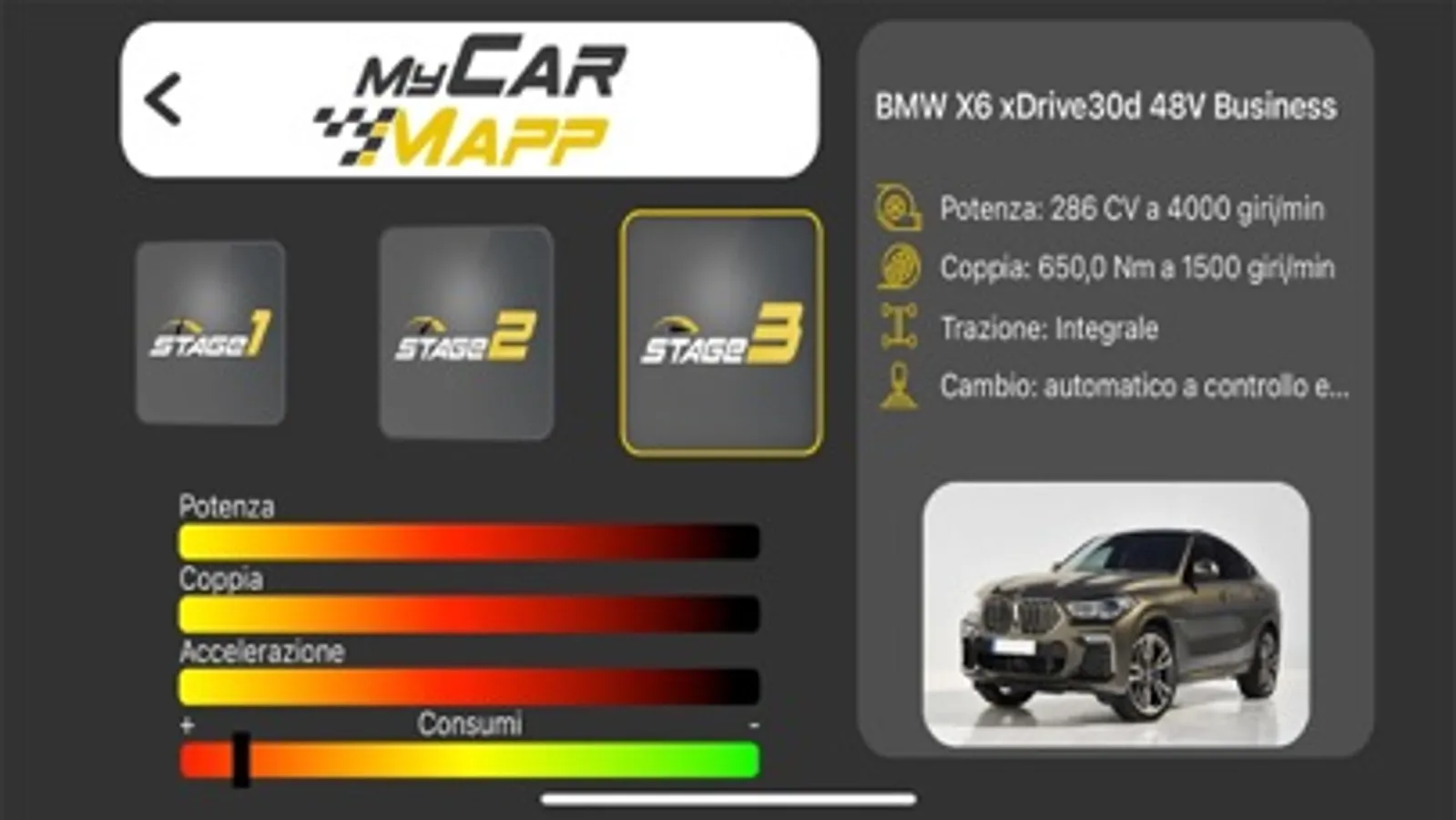 L'app ti permette di poter visionare e scegliere le prestazioni ottimali per la tua vettura, in modo da poter personalizzare il tuo veicolo con le proprie esigenze adattandole allo stile di guida desiderato.