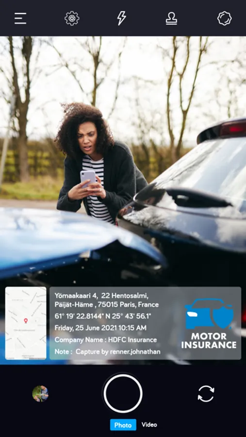 Photographs taken at the scene of an accident can be quite useful in proving your insurance claim. Details like current date-time, exact location address, and important notes can play a crucial role in your insurance claim