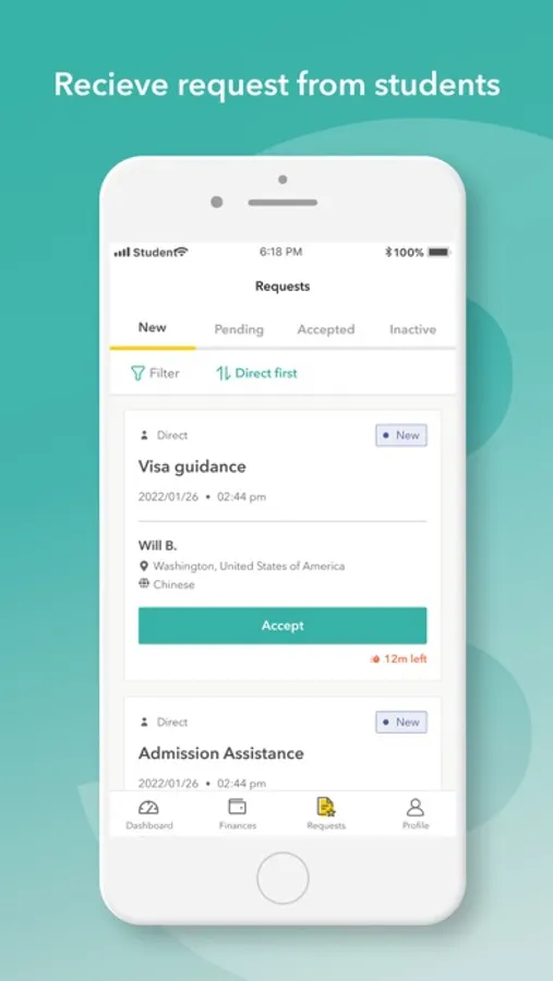 This app will help you list your services and find students who are looking for agents who have the expertise they need.
