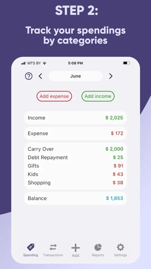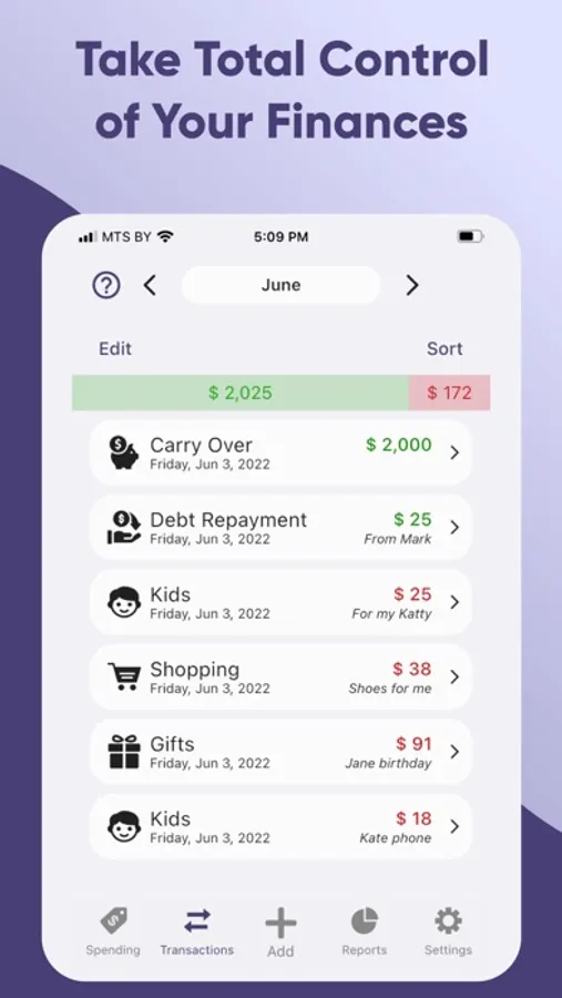 - Edit all you need: editable transactions and categories (choose icon and colour for each category)