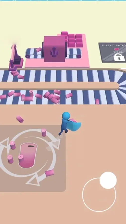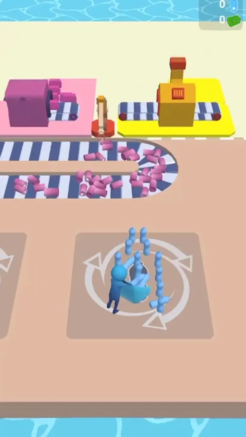 Use your picker to go around collecting recyclable objects and bring them to the conveyor. Get your product from the producing facilities to use them for upgrades in the end!