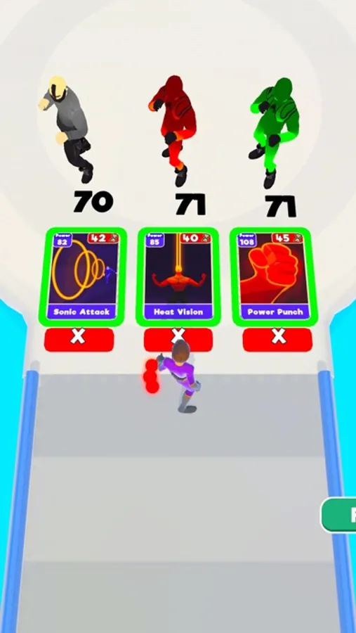 Every super power has a attack score and it must be higher than the villains' health power if you want to beat them!