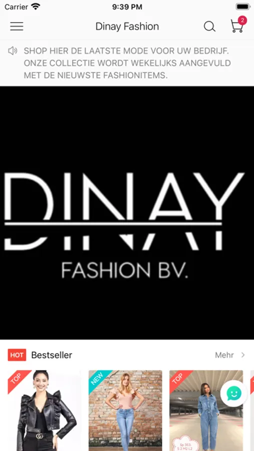 Met de Dinay applicatie hebben klanten altijd en overal toegang tot ons ruime aanbod. Elke week wordt dit aangevuld met die nieuwste fashionitems.