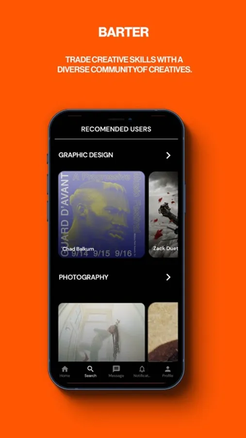 Search for other users to trade skills with or create open calls for collaboration on creative projects based on a specific skill, experience and location.