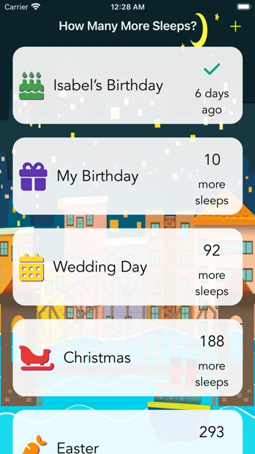 Although it has been built for children to be able navigate, it's also a great app for Adults too. Save yourself the effort of working out on your calendar how many sleeps are left until your big event and add them the app. Multiple events can be added with ease.