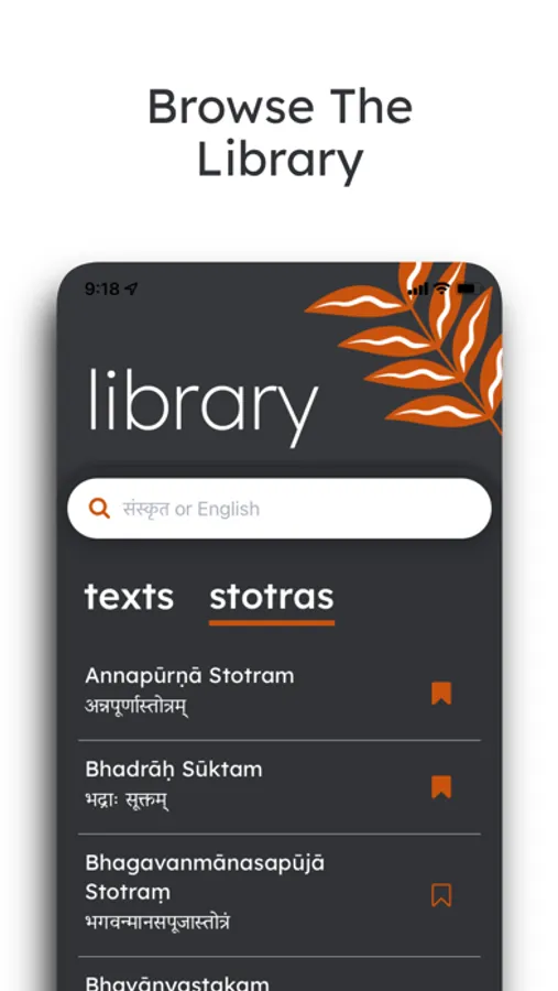 Begin by using the search bar by typing in Sanskrit or English or browsing through the entire Vedic library.