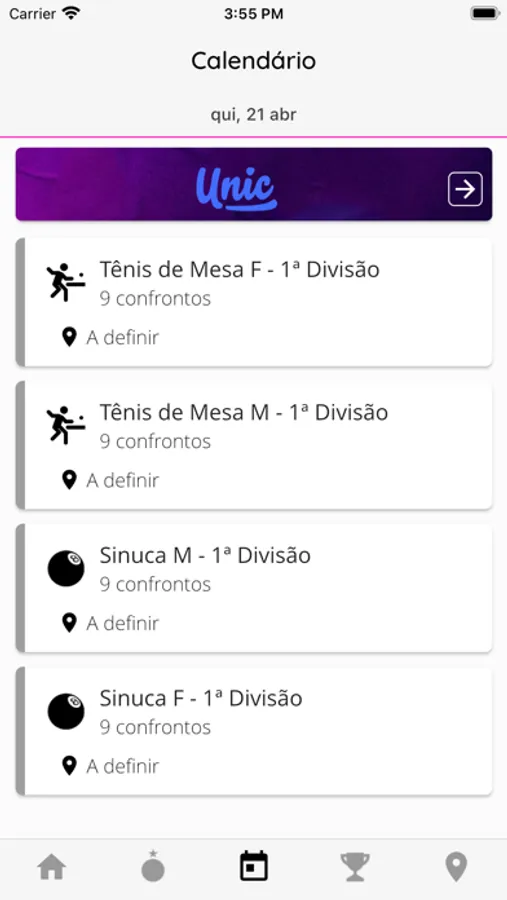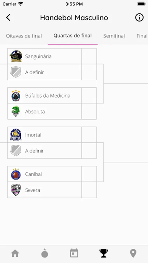 - Ver o calendário de jogos, chaveamento das modalidades e classificações