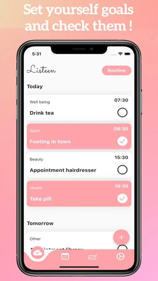 Listeen sends notifications onto your smartphone to remind you the tasks you have registered. These can either be occurring once or multiple times.