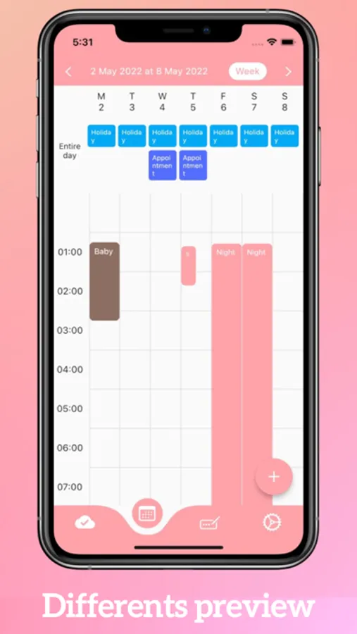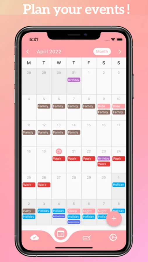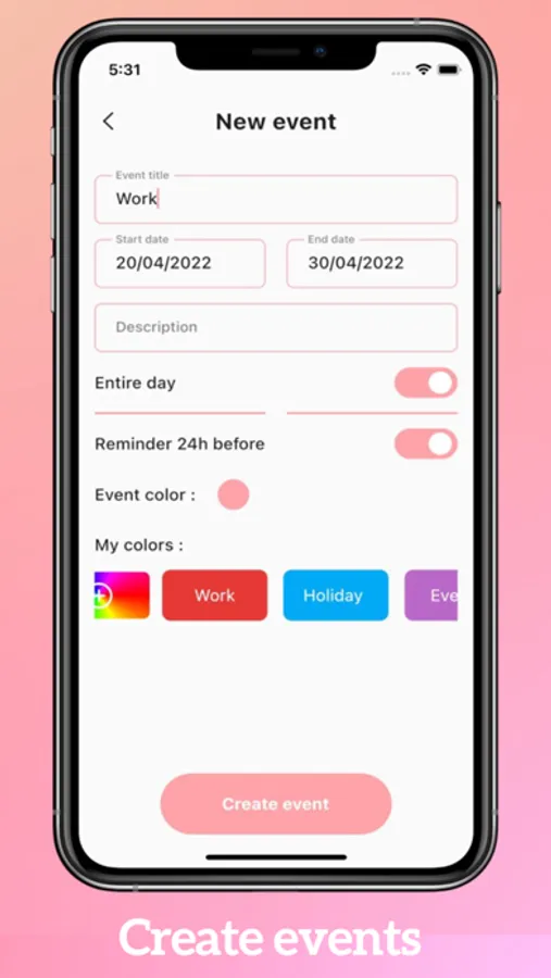 Professional or personal, create new events easily and fast with custom color codes so you can categorize them !
