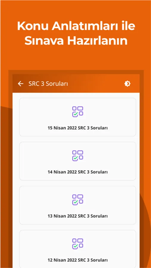 Güncel SRC Soruları uygulamamız ücretsiz olarak sizinle! Src 1, Src 2, Src 3, ADR, TMGD, ÜDY, ODY için çıkmış sorulara ulaşabilirsiniz.