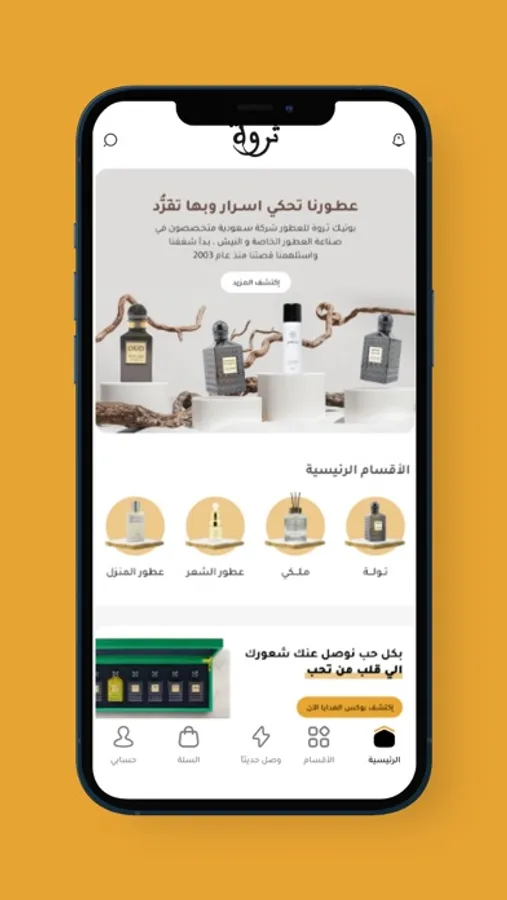 المتجر الإلكتروني لبوتيك ثروة للعطور الخاصة الأفضل و الأروع في المملكة العربية السعودية و بريطانيا للعطور منذ انطلاقه عام 2002 تطورنا لخدمتكم في مجال بيع العطور الخاصة 100% وعطور النيش، من خلال فروعنا حول المملكة و متجرنا الإلكتروني وتطبيقاتنا الذكية. نوفر لك أحدث العطور مع عروض وخصومات حصرية على أكثر من 100 منتج وبأحجام مختلفة بأسعار منافسة، لنؤمن يومياً أسهل وأذكى الطرق لطلب المنتجات عبر الإنترنت من أي مكان وفي أي وقت مع خدمات توصيل سريعة وطرق دفع آمنة، لنمنحك تجربة تسوق مذهلة مع ماركات رائعة مثل: تولة و مُلكي