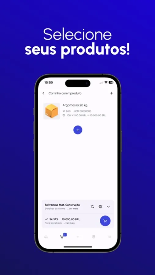 O aplicativo realiza vendas com um banco de dados de produtos e clientes sincronizados com seu software de gestão empresarial ou sistema ERP para indústrias.