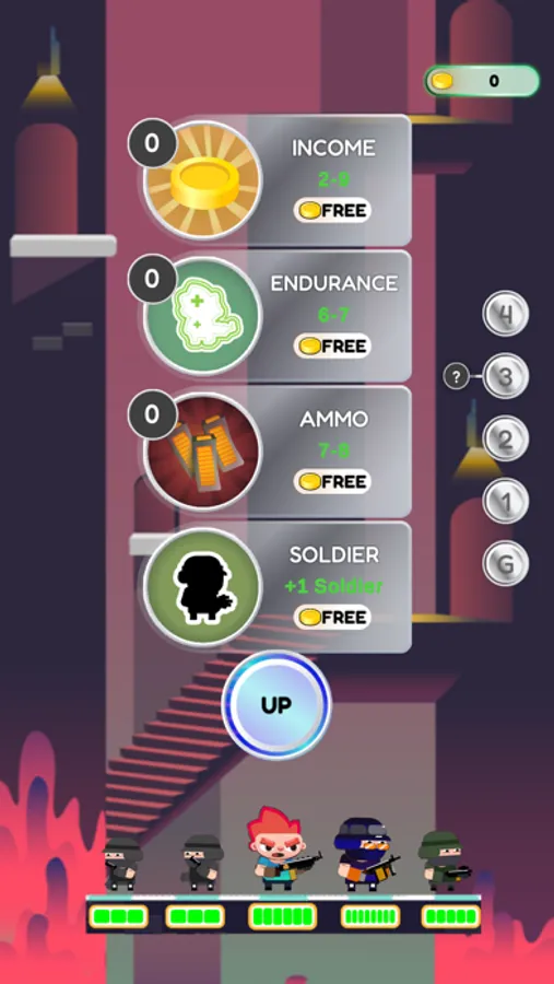 Recruit soldiers and merge them to level up. Position them to make your strategy!