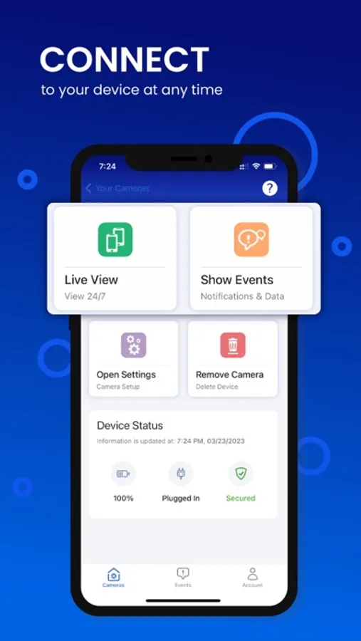 The Rill Camera app uses two-key encryption technology (public and private keys). Only you have access to the private key that encrypts your Rill Camera video data. This makes your data secure and accessible only to you. Not even we can see your camera!