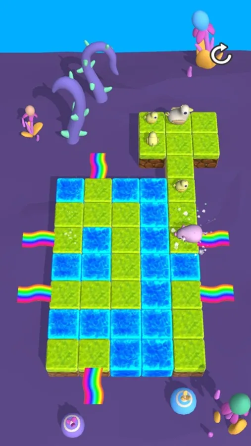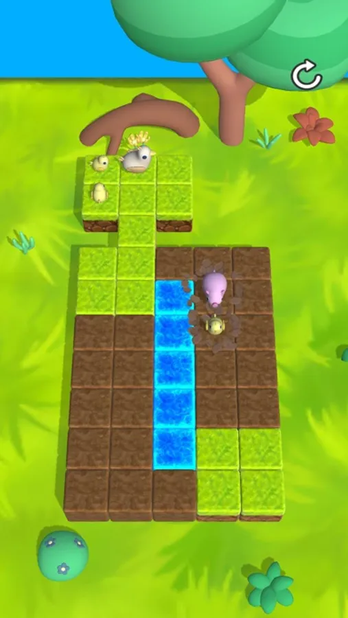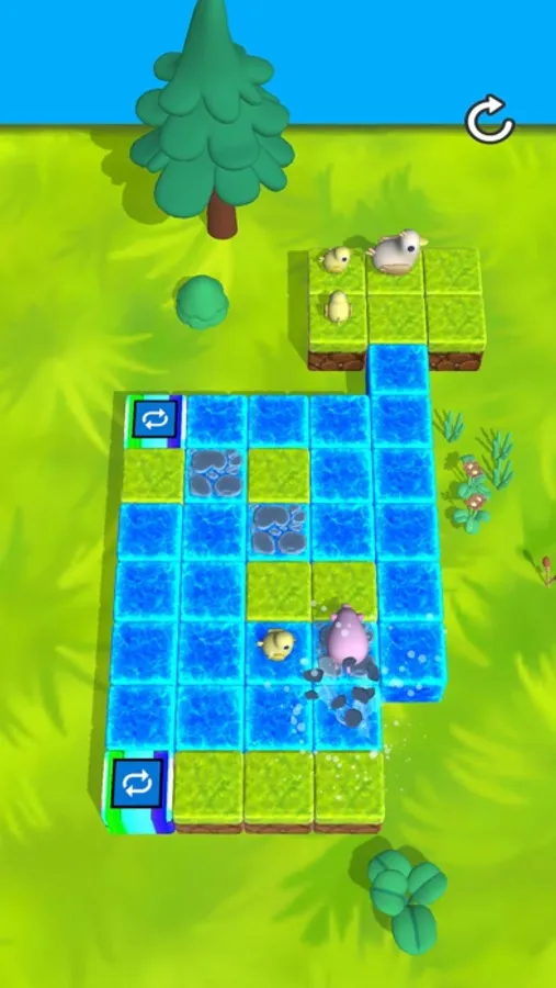 Switch between a Pig and a Fish to push the Lost Duckling to its Mother.