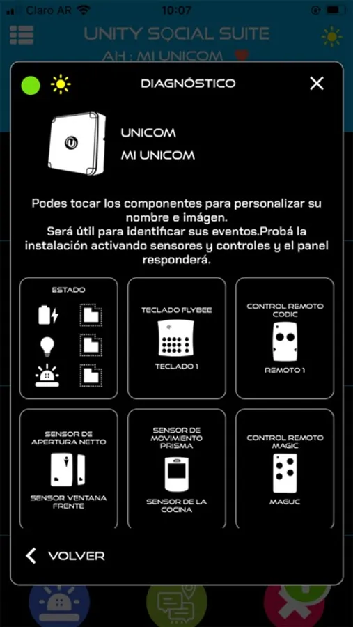 Unity Social Suite es la app para comandar dispositivos de alarma Unicom. Permite la configuración de dispositivos y compartirlos con otros usuarios mediante un sistema de permisos, recibir notificaciones en tiempo real, ver estado de sensores, establecer estados de armado, iniciar alertas y compartirlas, controlar salidas auxiliares (PGMs), seleccionar entre docenas de sonidos de bocinas Irina y emitirlas. Pueden crearse usuarios con perfiles según el uso requerido para que interactúen y reciban solo las funciones selectas. También programar tareas y rutinas que se ejecutarán en los tiempos seleccionados.