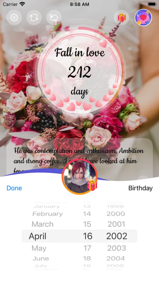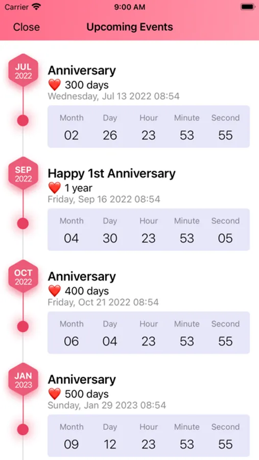 - Manage and remember important anniversaries, upcoming events for you and your partner!