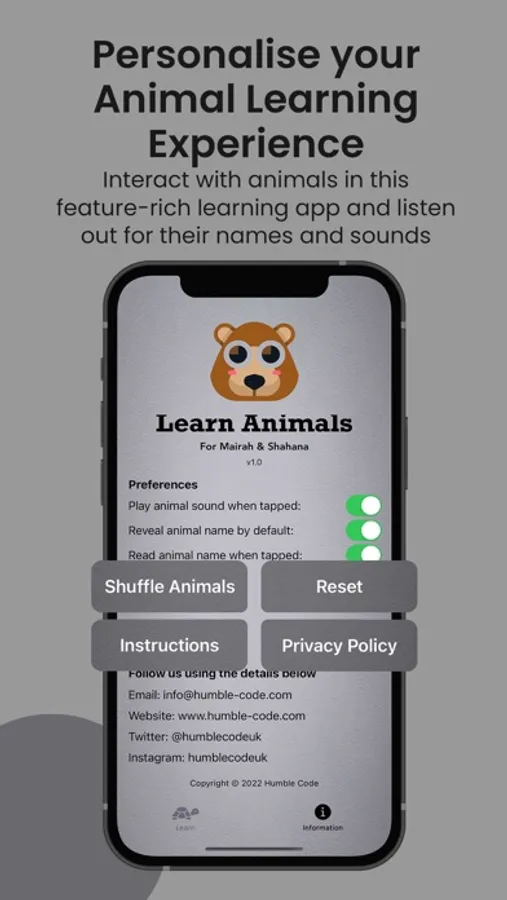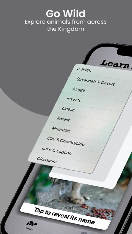• Choose to switch off animal names by default, which will aid learners by simply looking at an image and tapping reveal to display the name
