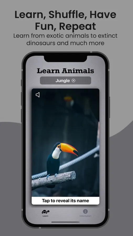 Explore various animal names, sounds and pictures to boost your educational learning and memory. Spend quality time with others and make memories together while learning from a vast array of animals - their names, sounds and stunning imagery.