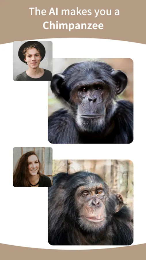 ChimpanMee is a simple app just for turning someone's face into a chimpanzee, but it generates various and realistic chimpanzees depending on their faces with the power of AI.