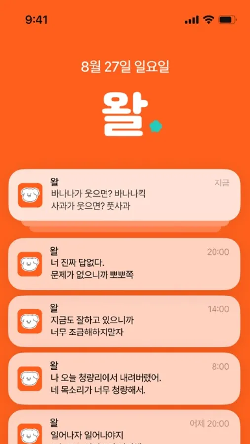 왈소리를 보내는 왈의 대표 캐릭터의 이름은 왈뿡이에요! 귀엽게 봐주세요.