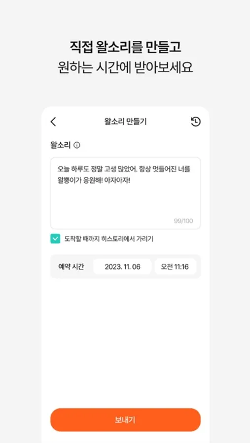 좋아하는 유형의 메시지를 원하는 시간대에 받을 수 있어요.
