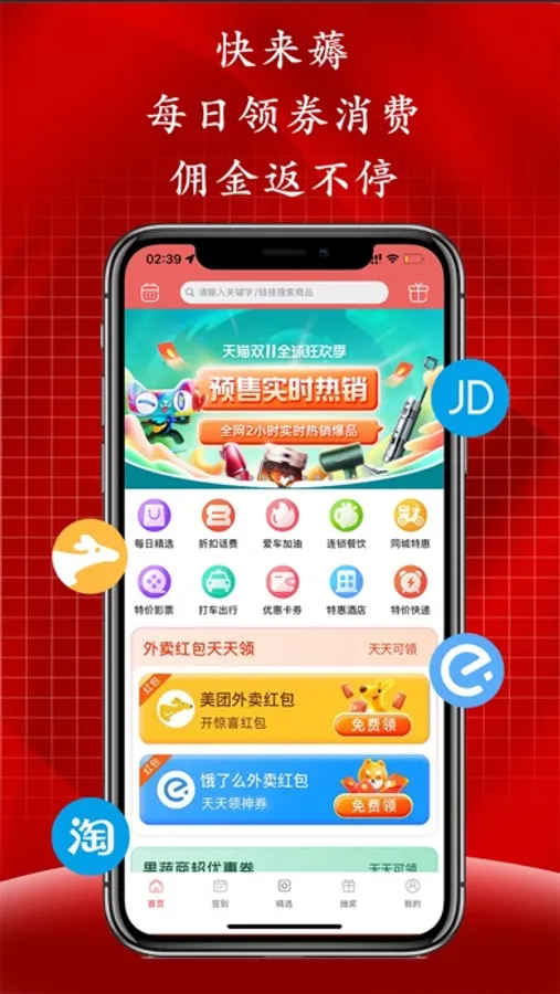快来薅致力于为用户提供最新各大平台的优惠券返佣服务,邀请好友下单,每日佣金赚不停。