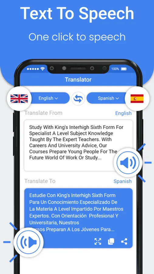 The translate text app helps to translate all languages input free text to speech online and text to text. The text translator can translate all language free text to speech online. The free text to speech online free tts feature helps you translate English German text into world languages translate as text to voice.