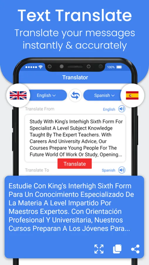 The Multi language translator app is a reliable language translation app. It can translate all languages. The voice translator online can convert audio to text. The text translator app can change text to speech. Just copy the text and paste in the text translator app to get reliable instant translation in offline language translator.