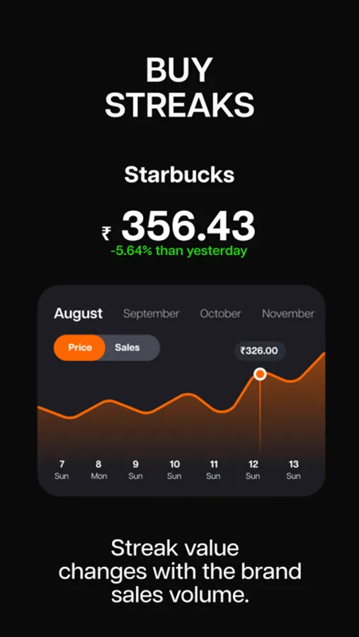 Grow as the brand grows. Streak value grows as the brand performance grows. Hold more Streaks to earn revenue share on every sale the brand does. Start with as little as 200*.