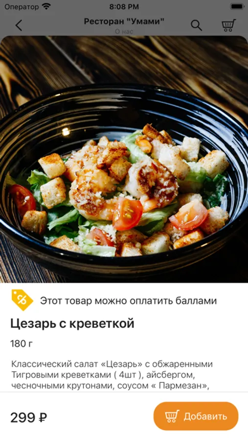 Приложение дает возможность накапливать кэшбэк, списывать его, сохраняет историю заказа.