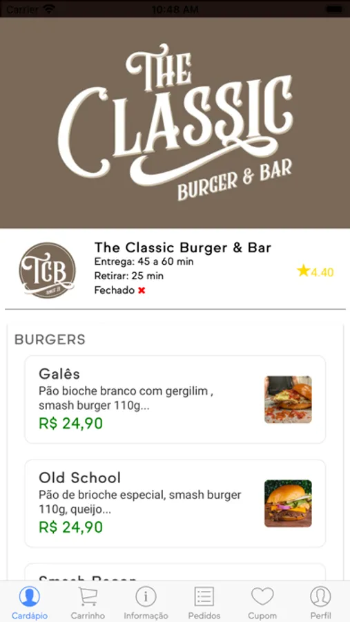 Agora ficou mais fácil pedir no The Classic Burger. Aproveite cupons e promoções exclusivas.