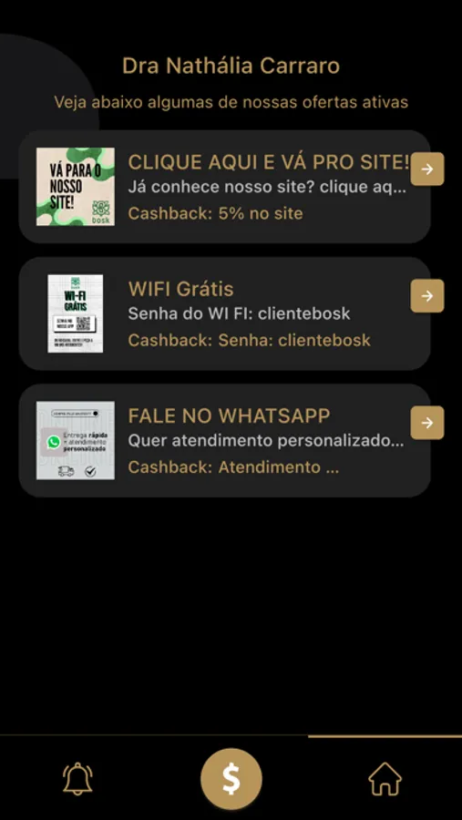 Ao realizar procedimentos em nosso estabelecimento o cliente recebe dinheiro de volta (Cashback). Através do aplicativo você receberá notificações de promoções, dicas de videos, interagir com a clínica, mensagens, e saber sua distância até nosso espaço comercial e também solicitar a rota até nós.