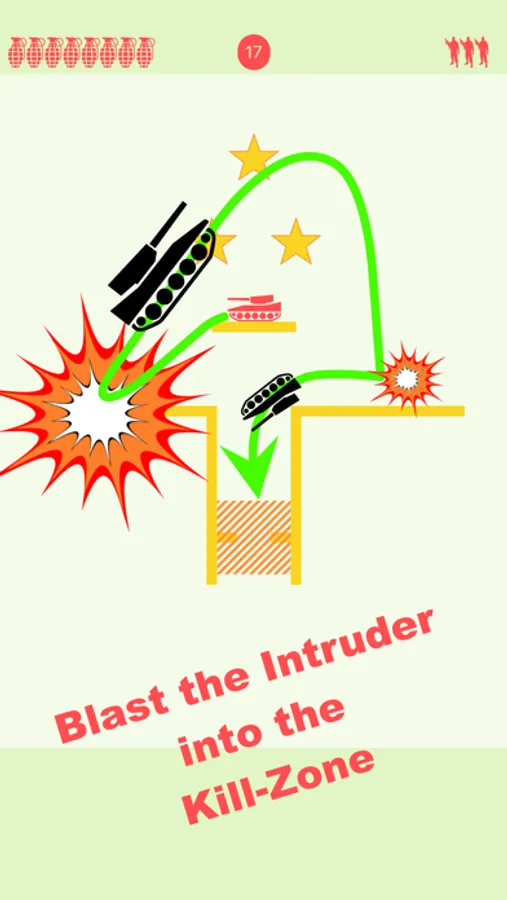 Use explosives and gravity to show evil invaders to the exit.