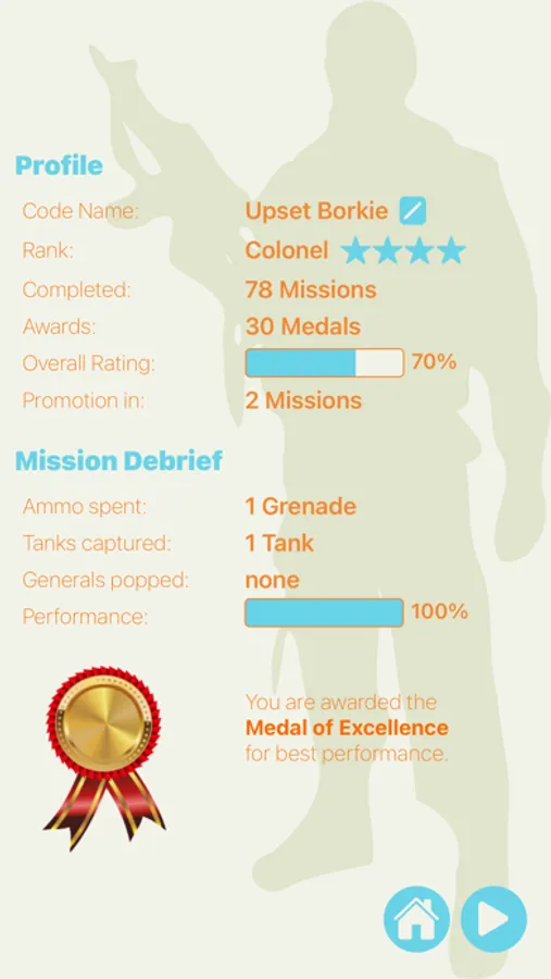 Every successful mission will add to your score as you advance through the ranks from Lieutenant to General.
