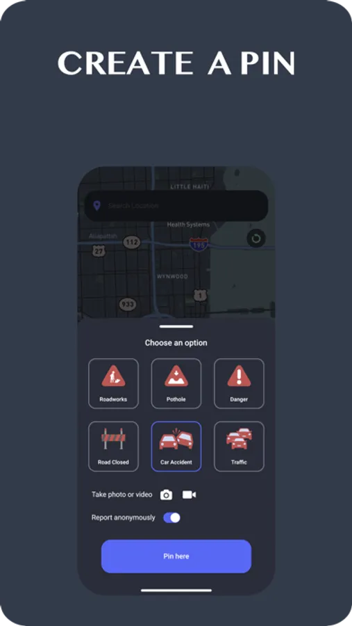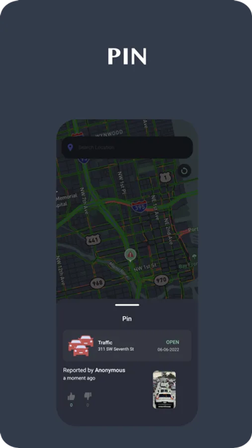 You can also report accidents or other traffic issues by creating Pin in real-time.