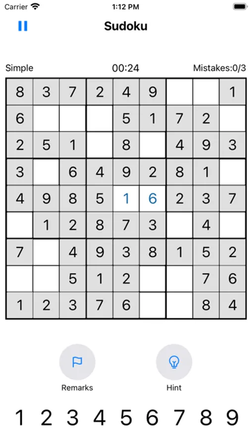 Sudoku is a Latin square game created by the Swiss mathematician Leonhard Euler at the end of the 18th century. In the big 9×9 grid, there are 9 small 3×3 grids, and more than 17 numbers are provided. Based on these numbers, use logic and reasoning to fill in the other blanks with numbers from 1 to 9. Each number can only appear once in each small nine-square grid, and each number can only appear once in each row and column.