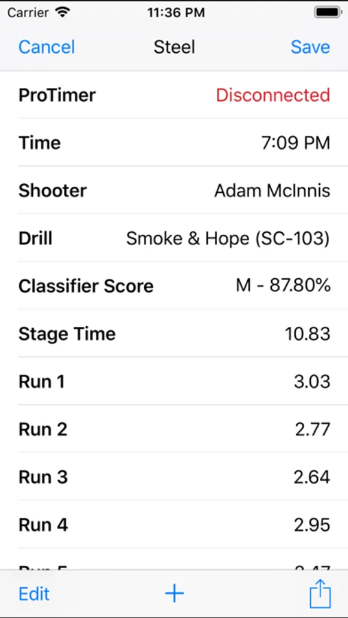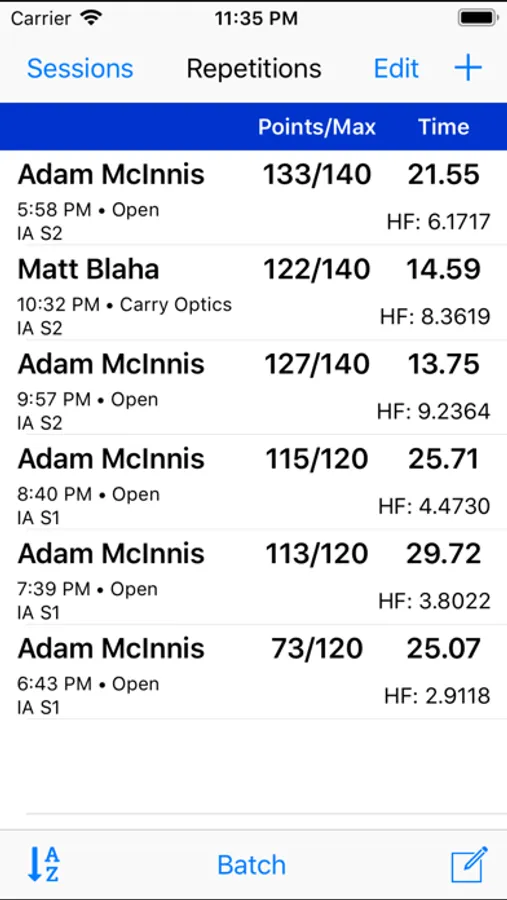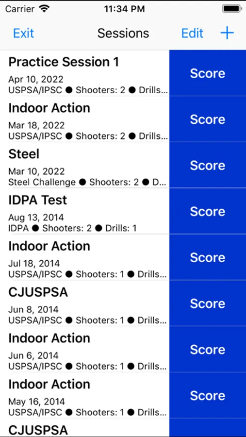 • Sessions will keep track of your score, shot time and hit factor or Classifier percentages for Steel Challenge.