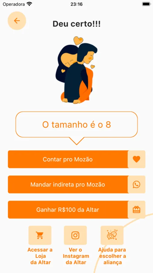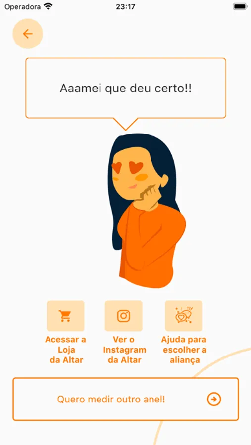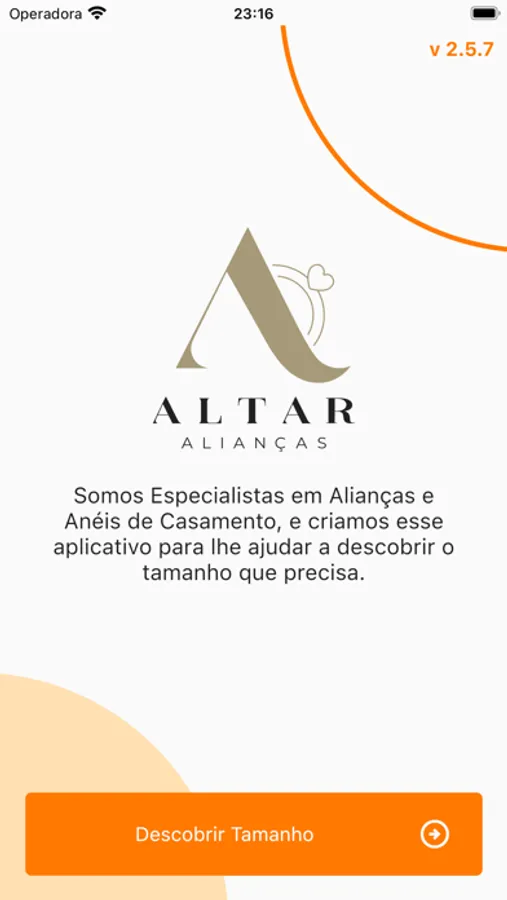 Criamos esse aplicativo para te ajudar a medir o tamanho das alianças de casamento ou anel de noivado, e determinar o número correto para seu dedo ou do seu amorzão, já no padrão do mercado brasileiro, que a Altar Alianças também utiliza.