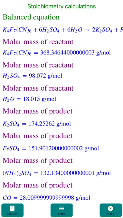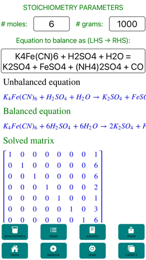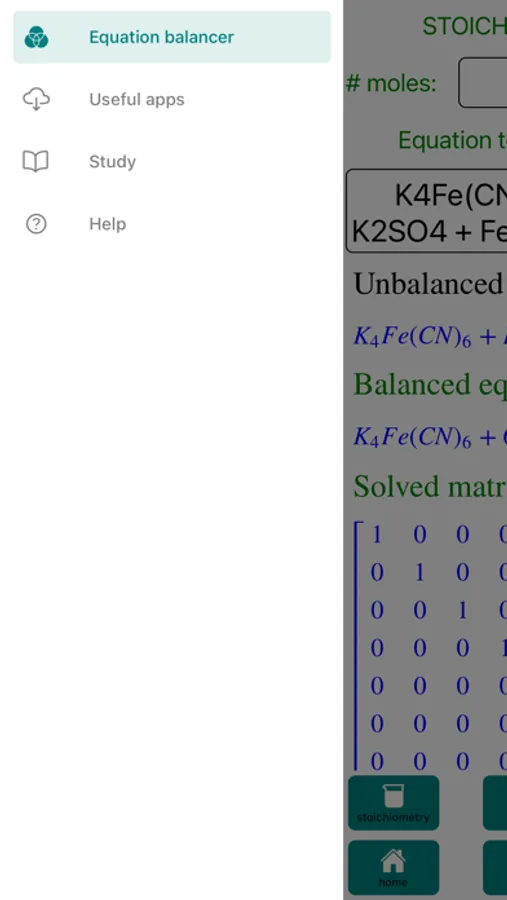 The ChemicalEquationBalance is an elegant app that does exactly as its name suggest, balances chemical equations and more.