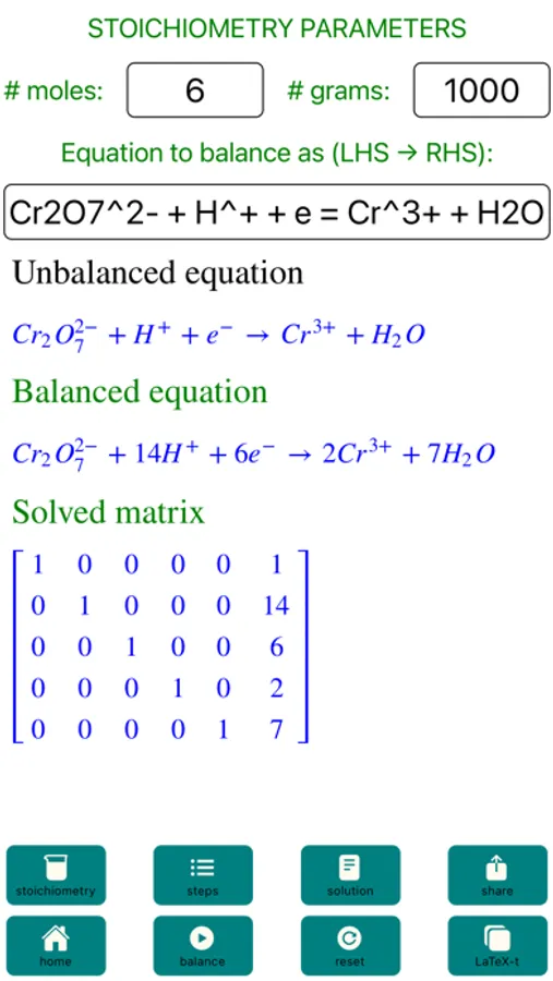The ChemicalEquationBalance is an elegant app that does exactly as its name suggest, balances chemical equations and more.