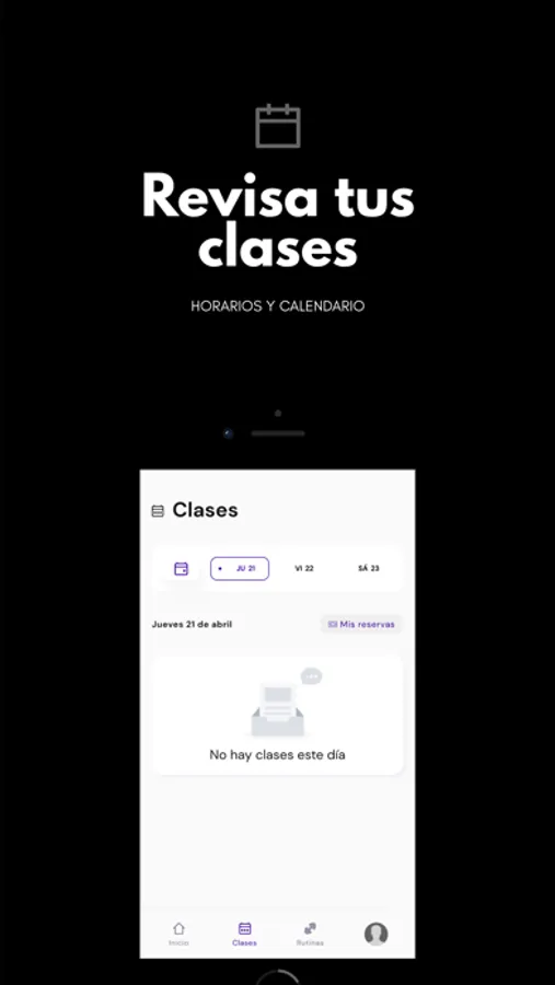 Te permitirá acceder rápidamente a tu perfil, reservar clases, recibir notificaciones y renovar.