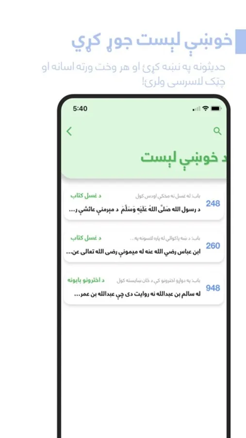 Pashto Sahih Bukhari, the first Pashto Hadith App, was developed by a team of Afghan professionals from Mizan Online Academy and Eman Studio. This App provides you with the Pashto translation of the most famous, authentic Hadith book, Sahih al-Bukhari. The App technical team is consistently working to improve the functionality of the App in order to provide you with a free access to thousands of Hadiths from Sahih al-Bukhari.